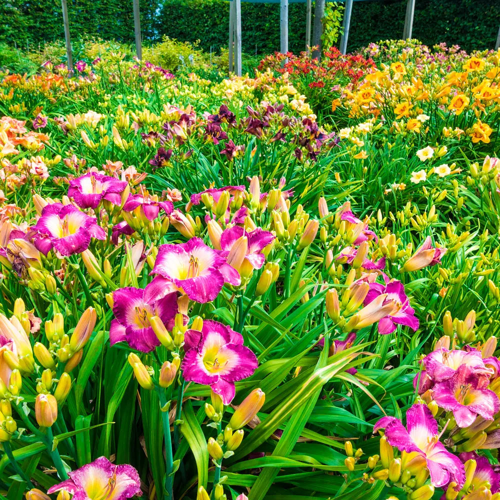 Add pops of color and cheer to the summer garden with this delightful mixture. Select Daylily Mixture is a random mix of colors and may include bright red, yellow, orange, pink, peach and two-toned varieties. One of the most popular perennials available, daylilies are vigorous, carefree and colorful. The daylilies in the Select Daylily Mixture have been developed for their vibrant, long-lasting color. We have indicated which varieties are evergreen, semi-evergreen and dormant. An evergreen variety's foliage will remain and the plant will not go into a dormant stage, which makes it more susceptible to damage from frost. A light mulch on top of the foliage will protect the plants from this damage. Semi-evergreen varieties will lose some of their foliage and will go into a dormant stage, and usually do not require any mulching. The hardiest daylilies are those varieties that go completely dormant during the winter.