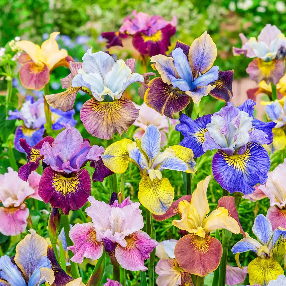 Add this magnificent mix of blooms anywhere you want spectacular color and a wealth of sophisticated blooms. Our Peacock Butterfly Mix features a striking blend of Siberian Iris in the most unusual colors available. The robust plants are well branched and carry a high number of healthy buds, ultimately resulting in a longer, stronger floral display. Long-lived garden perennials are perfect for borders and cutting beds. Plant near a water feature where they benefit from the moist soil for best impact.