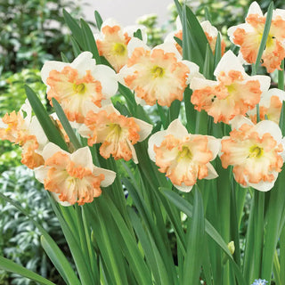 What a sweetheart! Sunny Girlfriend stuns in spring with a pinkish-orange to nearly red cup against a white perianth. A pinkish-white center peeks out for a subtle yet cheeky touch of color. Plant this split-corona daff in sunny spaces, preferably in clusters or groups, to highlight high-traffic areas and call attention to feature beds. An intensely exotic coloration that has been deemed "tops" by daffodil experts.