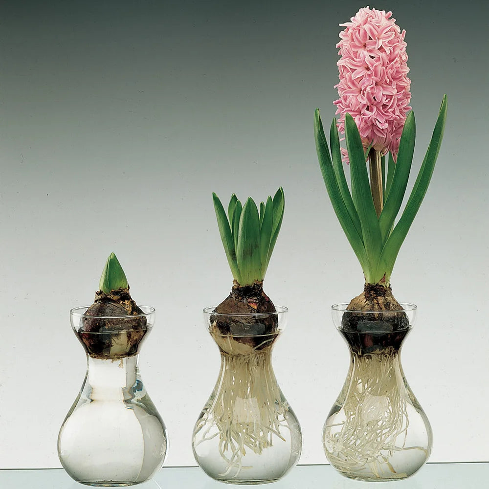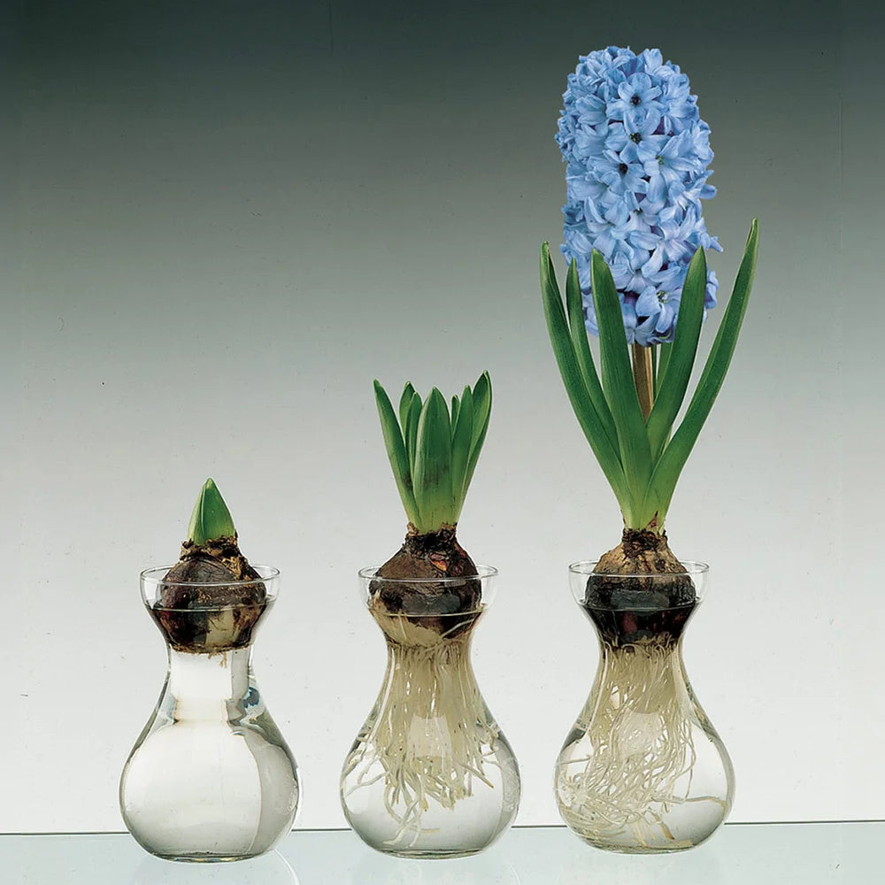 Excellent for use with hyacinths. This traditional glass vase displays the active process of the growing hyacinth. Available in clear glass only. 12 vases per box.