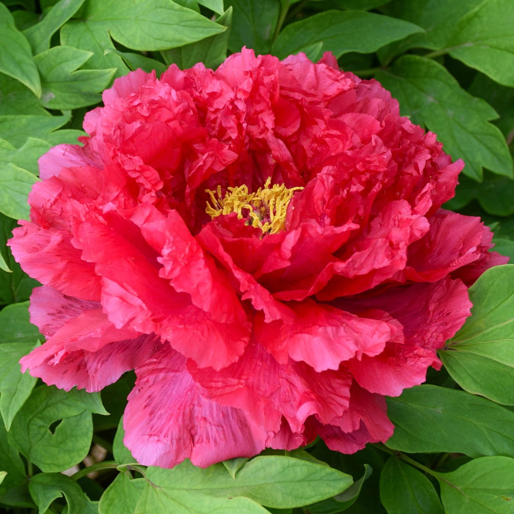Luxuriant and floriferous, this attractive ornamental shrub produces some of the best (and biggest) magenta-red peonies to date. The lightly fragrant blooms of Road Racer lure butterflies and pollinators to the sunnier garden sites, and make excellent cut flowers, too. Hardy and long lived, the plant grows 4-5' tall and keeps its woody stems year round, providing plenty of winter interest. A great addition to back borders and mixed perennial beds. Easy to grow and maintain.