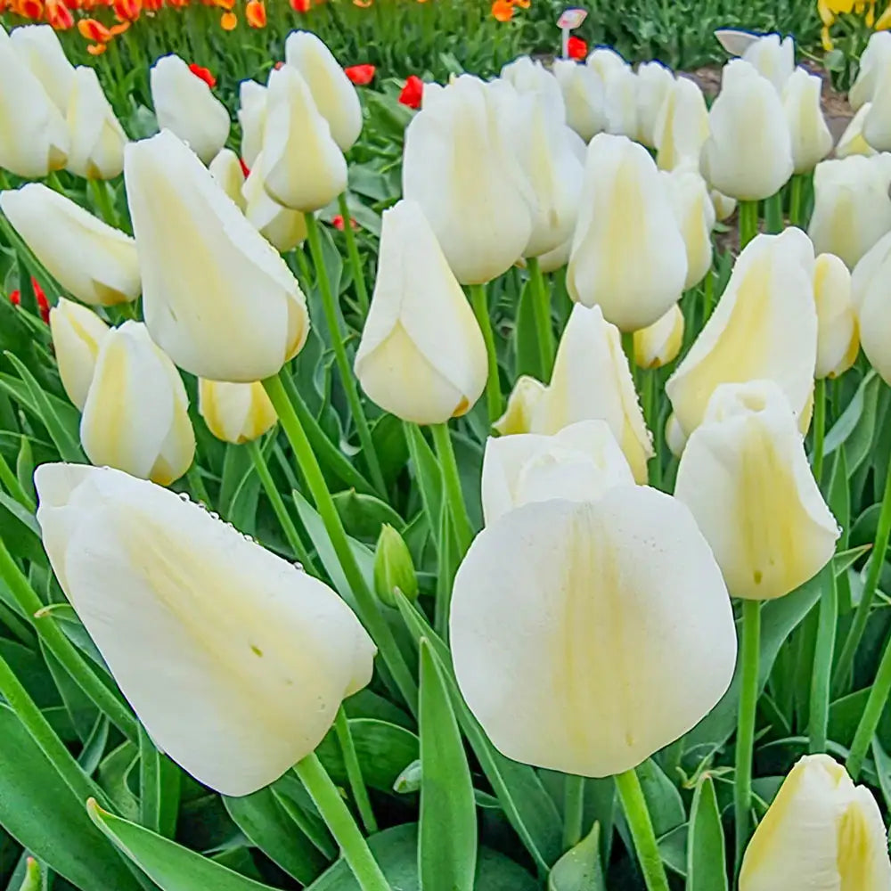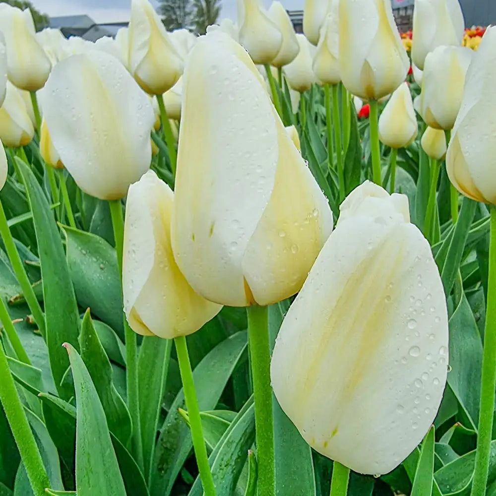 Whether updating a seasonal border or creating a classic moonlight garden, a generous planting of these velvety, ivory-white tulips will invigorate the scene. The blooms are large and feature creamy accents, giving them an extra touch of dimension and sophistication. A long-lasting variety, Pays Bas makes itself at home in cut-flower arrangements and outdoor displays. Robust 20-24" stems withstand unpredictable spring weather conditions with ease.