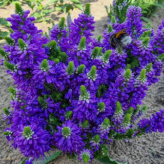 Longer flowering and more floriferous than its predecessors, this new veronica wows with deep violet-blue blooms from late spring to fall. Pollinators love Baby Bloomer Blue, thanks to its bold color and extended bloom, and will visit the landscape daily. A very hardy variety, it needs little care to thrive in full sun to part shade sites. Simply remove spent flower spikes to encourage rebloom. A wonderfully compact, upright plant with color and beauty to boot. PP25901